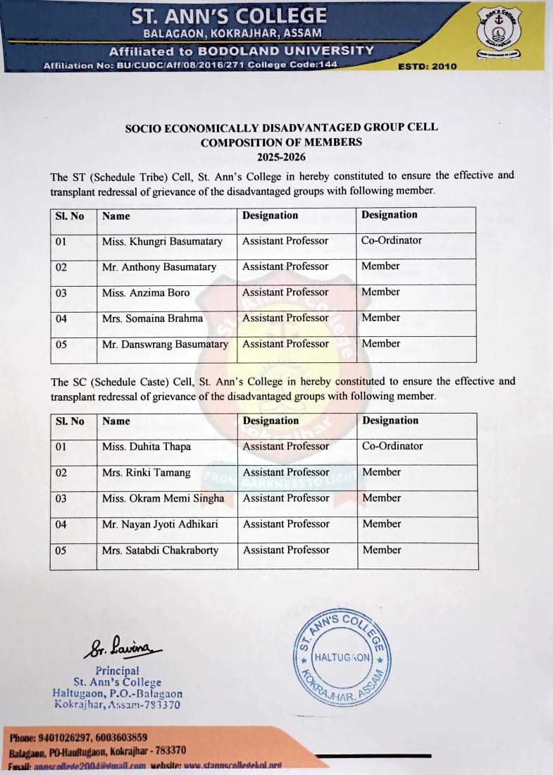 The Socio-Economically Disadvantaged (Scheduled Caste) Cell of the college